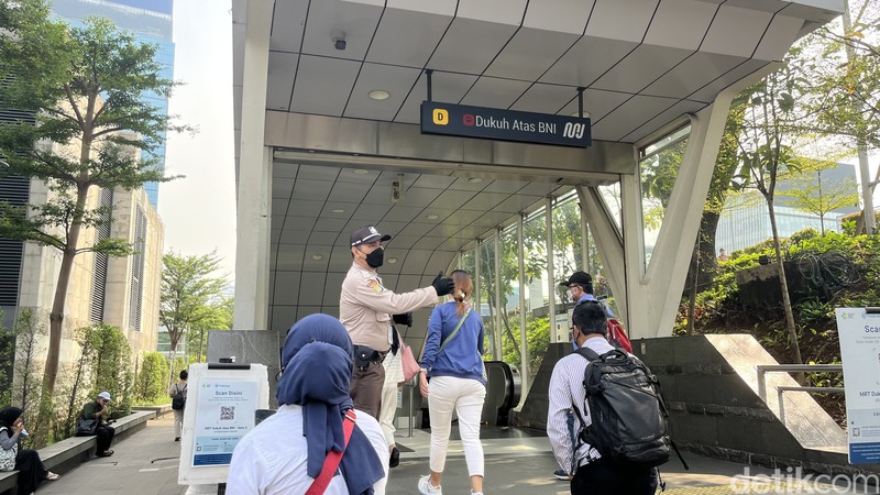 Pantauan detikcom di Stasiun MRT Dukuh Atas dan stasiun KRL Sudirman, petugas membebaskan pengunjung untuk 'nyelonong' masuk tanpa memindai status vaksinasi. Foto: Khadijah Nur Azizah/detikHealth