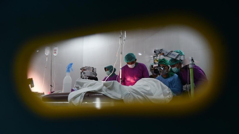 Seorang pasien melewati ruang operasi.