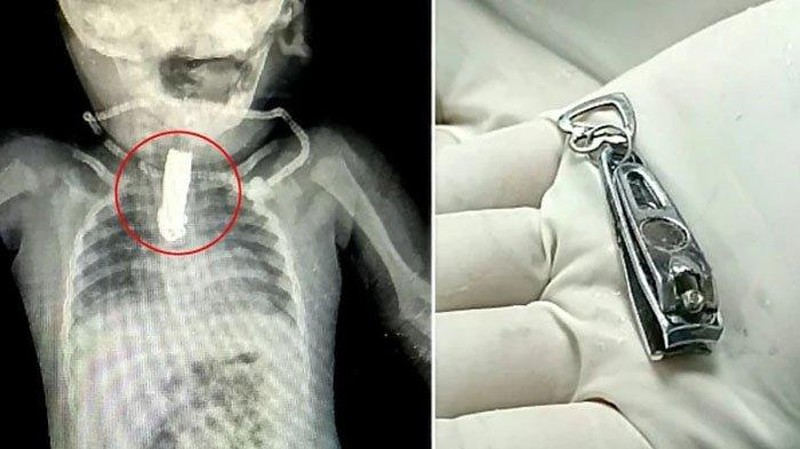 Dikutip dari Mirror, Kamis (29/9/2922), bayi tersebut menelan gunting kuku saat bermain, dan dilarikan ke rumah sakit begitu orang tuanya menyadari. (Foto: Newslion/SWNS)