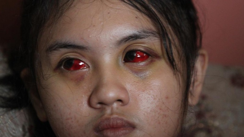 Beginilah kondisi bola mata salah seorang Aremania yang menjadi korban gas air mata di tragedi Kanjuruhan, Malang, Jawa Timur.