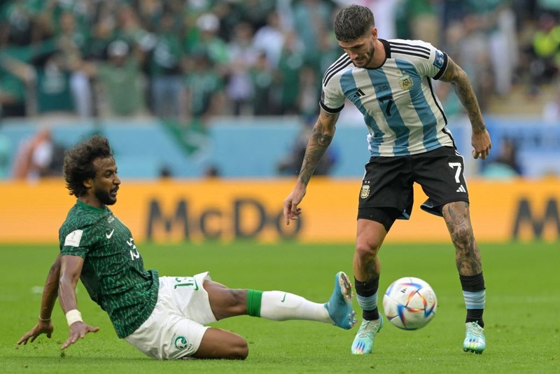 Cedera horor dialami bek Arab Saudi Yasser Al Shahrani usai bertabrakan dengan timnya sendiri di menit-menit terakhir saat berlaga melawan Argentina di Piala Dunia 2022. (Foto: Kirill Kudryavtsev/AFP/Getty Images)