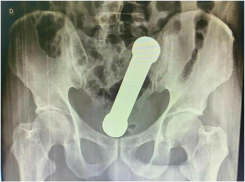 Seorang pria di Brasil mengeluh sakit perut setelah barbel nyangkut di anusnya selama dua hari. (Foto: International Journal of Surgery Case Reports)
