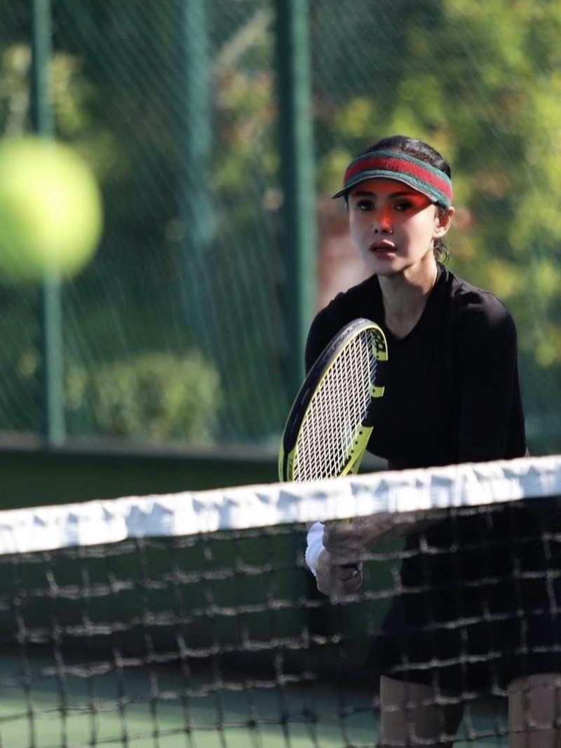 Olahraga yang baru-baru ini dijalani oleh Yuni adalah tenis. Meski dirinya terbilang baru mempelajari olahraga ini, tetapi Yuni Shara merasa senang dan selalu bersemangat untuk berolahraga. Foto: Instagram @yunishara36