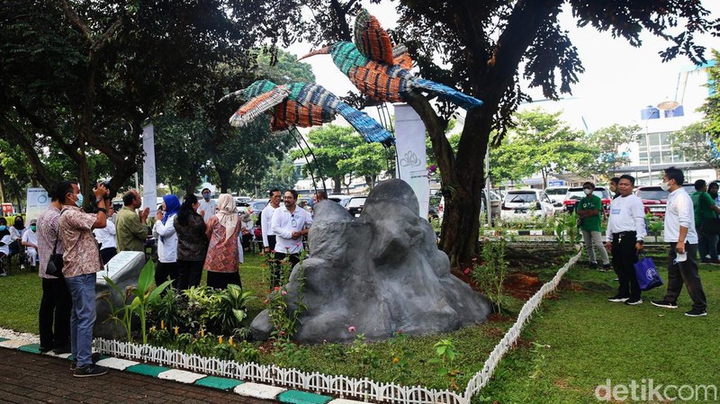 RSUP Fatmawati bekerjasama dengan Institut Kesenian Jakarta membuat patung burung kolibri yang diletakkan di Taman RSUP Fatmawati, Jakarta, Selasa (30/5/2023).