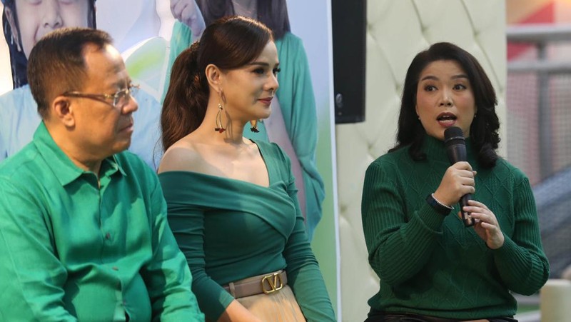 Artis Astrid Tiar (tengah) berbagi pengalamannya menjadi ibu yang memiliki anak alergi terhadap susu sapi dalam diskusi Morinaga bertajuk Alergi Bukan Halangan Bagi Anak Wujudkan Potensi di Jakarta, Selasa (11/7/2023).