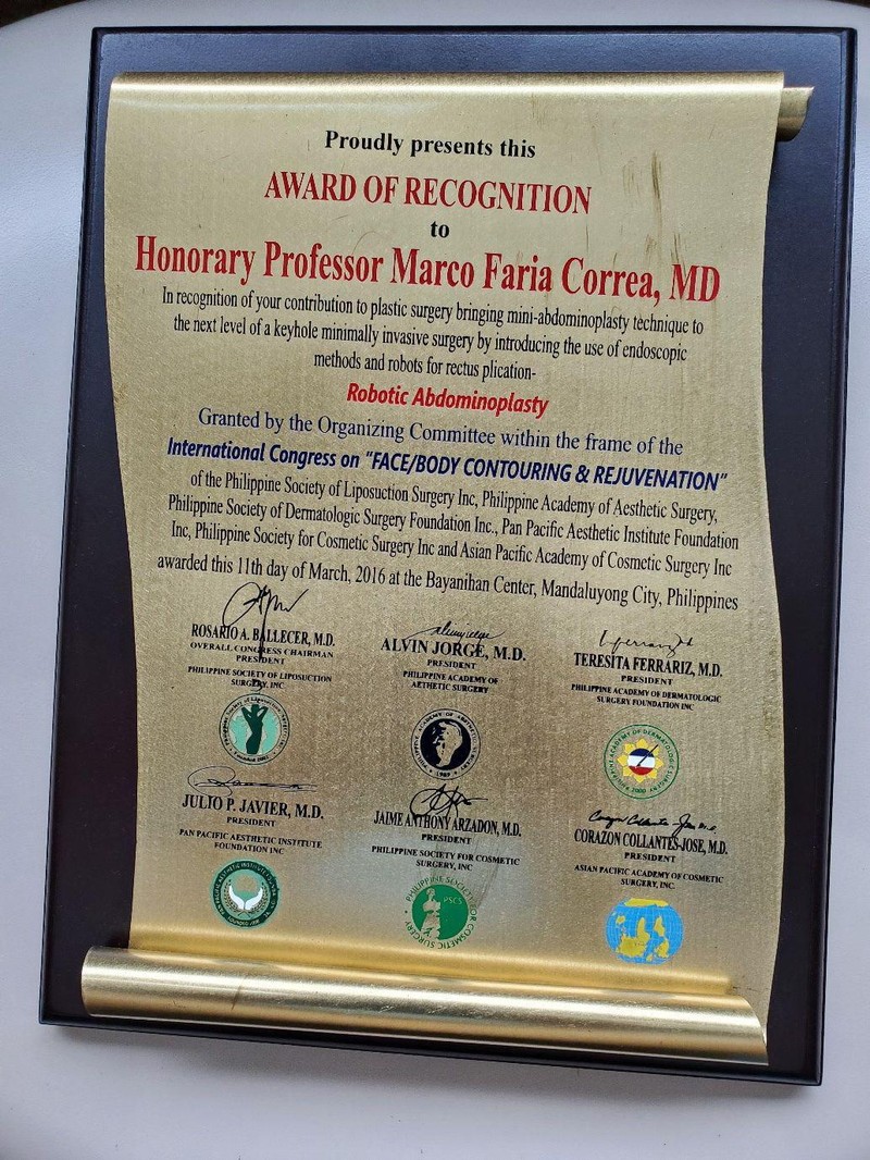 Salah satu contoh inovasi Dr. Marco Faria-Correa adalah pengobatan kanker payudara yang disebut Mastektomi, dengan cara menyisakan puting dan kulit menggunakan bedah robotik, pasien akan mendapatkan efek bekas luka yang sangat minim.