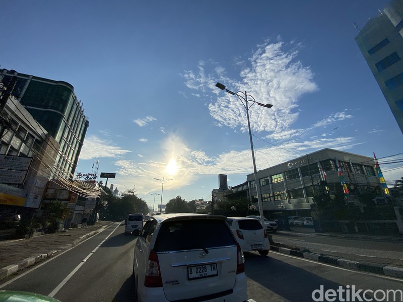 Awal pekan ini kondisi langit Jakarta tampak cerah. Langit berwarna biru dihiasi awan putih tipis. Foto: Uyung/detikHealth