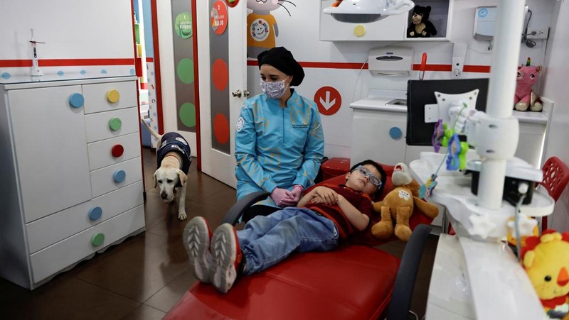 Aksi Gemas Anjing Ramah Anak di Klinik Gigi