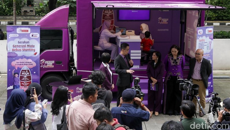 dr Novitria Dwinanda, SpA(K), CEO Danone Specialized Nutrition (SN) Indonesia Lee Meeng Thong, Co-Founder & President Director of Alodokter Group Suci Arumsari, dan Healthcare Nutrition Marketing & Strategy Director, Danone SN Indonesia Angelia Susanto turut menyaksikan proses skrining stunting.