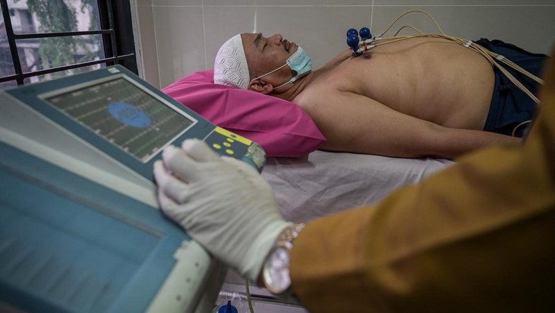 Petugas puskesmas melakukan pemeriksaan elektrokardiografi (EKG) terhadap peserta Pemeriksaan Kesehatan Gratis (PKG) di Puskesmas Pulo Gadung, Jakarta, Senin (10/2/2025). Pemerintah meluncurkan program PKG bagi Warga Negara Indonesia (WNI) yang berulang tahun dengan tujuan meningkatkan kesadaran masyarakat terhadap pentingnya menjaga kesehatan, melakukan deteksi dini berbagai penyakit, serta menekan angka kecacatan dan kematian akibat kondisi medis yang tidak terdeteksi sejak awal. ANTARA FOTO/Fauzan