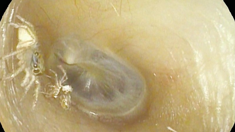 Seorang wanita di Taiwan terkejut saat mendapati telinganya menjadi sarang laba-laba. Dokter bahkan sudah menemukan kerangka laba-laba yang sudah berganti kulit di telinganya. Wanita berusia 64 tahun itu awalnya mengunjungi dokter THT di setelah menghabiskan empat hari mendengar suara-suara aneh di telinga kirinya. Kasus ini diterbitkan di The New England Journal of Medicine. (Foto: The New England Journal of Medicine).