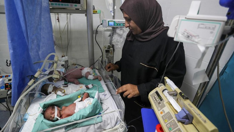 Para dokter menggambarkan tantangan yang mereka hadapi dalam menjaga bayi-bayi baru lahir tetap hidup, sementara Israel terus melanjutkan kampanye militernya. Foto: REUTERS/Mahmoud Issa