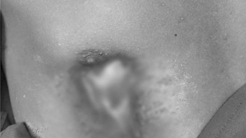 Sebelumnya pria ini tidak mengalami gejala apapun, sampai 10 hari sebelumnya ia melaporkan keluhan keluarnya nanah. Ia tidak mengalami gejala infeksi lain seperti batuk, demam, sulit bernapas, dan bahkan tak mengalami nyeri. (Foto: Journal of Surgical Case Reports)