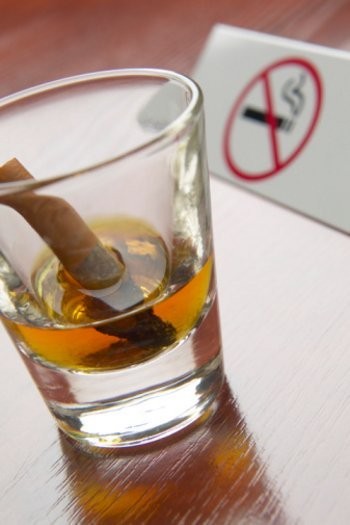 Sama halnya dengan kopi, kombinasi rokok dengan alkohol juiga dianggap cukup seksi di kalangan perokok. Menurut penelitian, keduanya juga bisa saling menguatkan rasa. Untuk menghindarinya, hentikan juga kebiasaan minum alkohol setelah bisa berhenti merokok. Baru setelah beberapa bulan, biasanya secangkir dua cangkir anggur sudah tak memicu ketagihan rokok.
