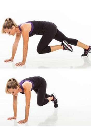 Awali dengan posisi plank atau badan lurus dan ditopang kedua tangan. Tekuk salah satu kaki, bawa lutut merapat ke dada dan putar 45 derajat sebelum kembali ke posisi semula. Ulangi pada kaki yang lain dan anggap sebagai satu pengulangan. Lakukan sebanyak 10 pengulangan secepat mungkin.