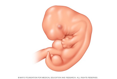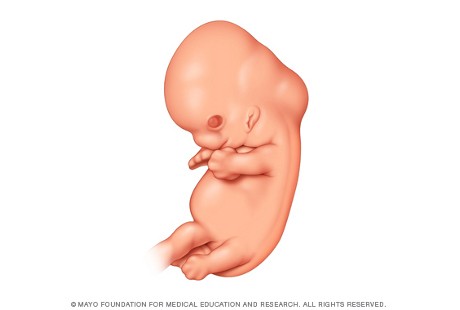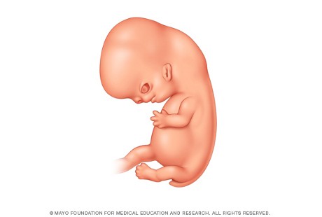 Di awal kehamilan 11 pekan atau 9 minggu setelah pembuahan, kepala janin yang masih terus disempurnakan bentuknya, memiliki ukuran sekitar setengah dari panjang keseluruhan. Untuk mengejar ketertinggalan, tubuhnya akan berkembang pesat dalam beberapa pekan mendatang. Nah, dengan bentuknya sekarang sudah bisa digambarkan sebagai janin.
