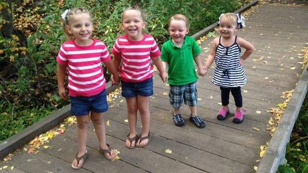 Dua pasang anak kembar Kerri dan Kelli: Madison dan McKell, serta Kole dan Hallie. (Foto: Kerri Bunker) |