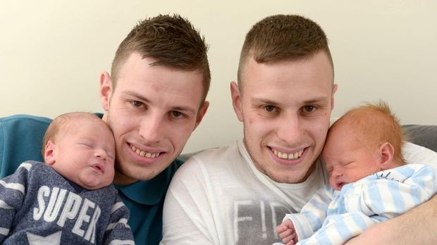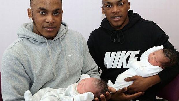Kembar asal Wolverhampton, Inggris ini menjadi ayah di hari yang sama. Dari awal mereka sudah dibuat tak percaya karena pasangan mereka sama-sama mengatakan bahwa persalinan mereka diperkirakan terjadi pada tanggal 26 November 2014.