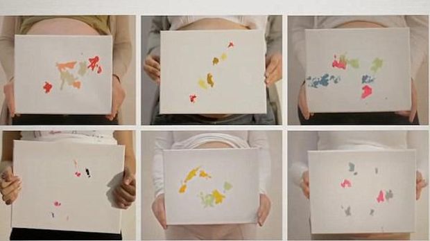 Seluruh proses ini pun terekam oleh kamera. Dan saat janin-janin ini mulai 'melukis', terlihat dengan jelas bagaimana kuas-kuas itu bergerak sesuai dengan tendangan si janin, lalu terciptalah bercak warna-warni di atas kanvas.