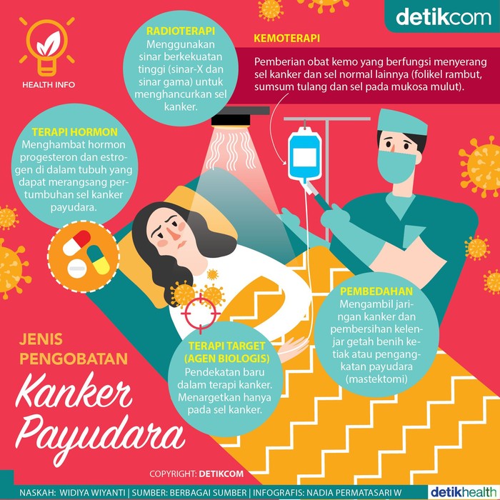 Jakarta - Usai didiagnosis kanker payudara, seseorang harus segera menjalani pengobatan. Ada 5 pengobatan yang biasanya diterapkan pada pasien kanker payudara, apa saja?