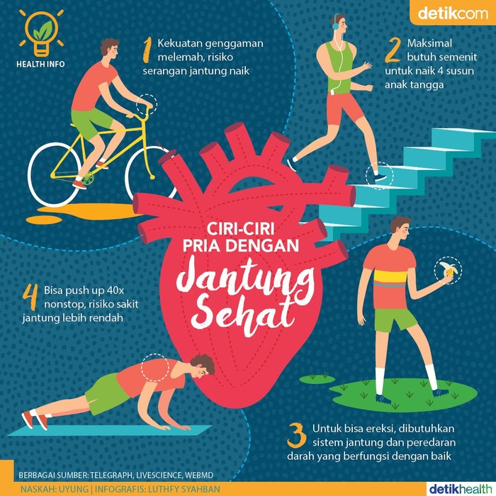 Jakarta - Tes jantung idealnya dilakukan dengan elektrokardiografi (EKG) di rumah sakit. Tapi dari aktivitas sehari-hari, kualitas jantung juga kelihatan sih.