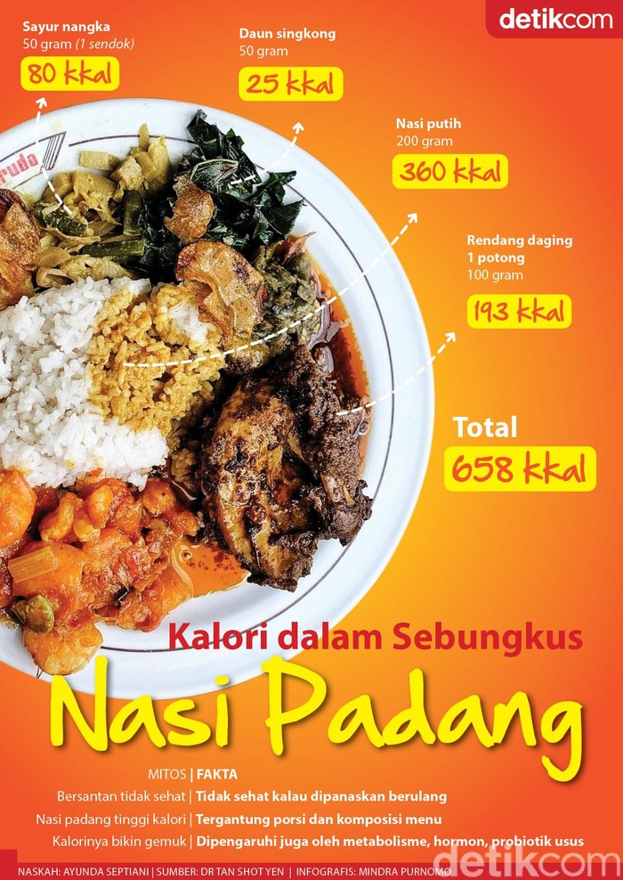 Jakarta - Gerakan 'boikot nasi padang' yang muncul belakangan ini mengungkit lagi ketakutan banyak orang soal kalorinya yang tinggi. Beneran bikin gemuk nggak sih?