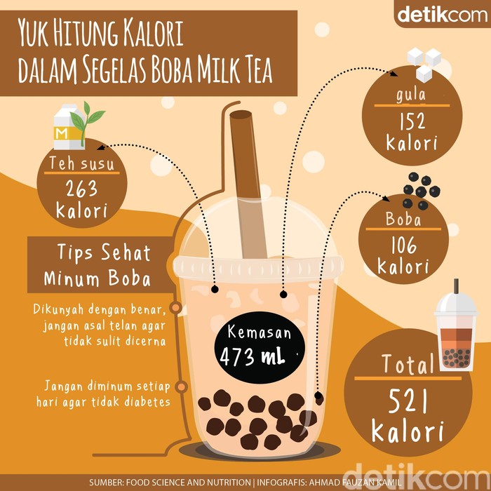 Jakarta - Banyak hoax menyesatkan seputar minuman boba. Tapi soal kandungan kalori, sulit dibantah minuman ini memang salah satu yang kandungannya paling bikin gemuk.
