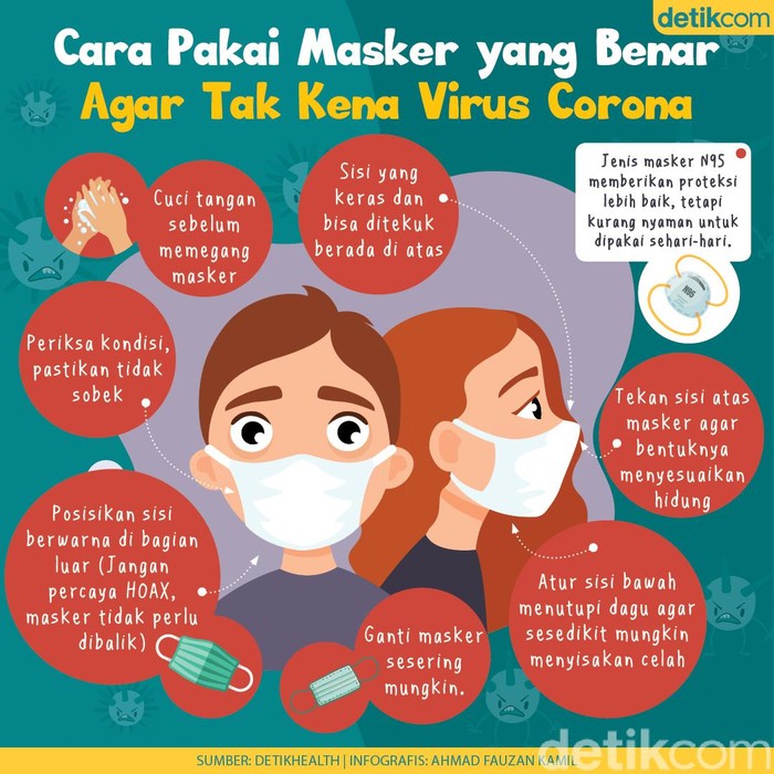 Cara Memakai Masker yang Benar Agar Tak Kena Virus CoronaFoto: infografis detikHealth