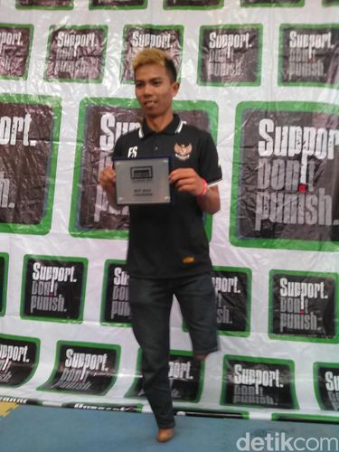 "Dulu waktu SD jadi penyerang, beberapa kali saya ikut event sepakbola. Tapi pas SMP milih pindah posisi jadi kiper, soalnya capek, nggak kuat kalau jadi penyerang mah," ucap pria yang rambutnya dicat pirang ini.