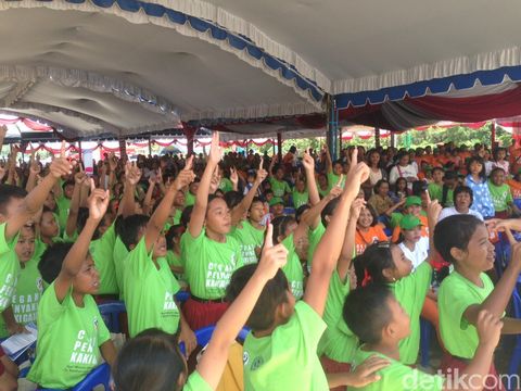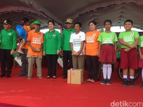 Jakarta - Tepat hari ini (3/10) Menteri Kesehatan Nila Moeloek mencanangkan Bulan Eliminasi kaki Gajah (Belkaga) di Kabupaten Gunung Mas, Kuala Kurun, Kalimantan Tengah. Di sela-sela pencanangan tersebut, muncul keseruan ketika Menkes Nila mengadakan kuis berhadiah untuk masyarakat.