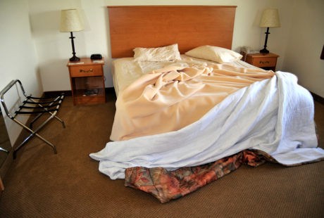 Biasakan untuk turun dari tempat tidur dan pergi ke ruang makan untuk makan, hindari untuk makan di tempat tidur. Sebab kemungkinan makanan akan tercecer dan membuat waktu istirahat atau intim bersama pasangan menjadi berantakan. Selain menghindari ada televisi di kamar, jaga tempat tidur sebagai zona bebas makanan untuk meningkatkan kehidupan seksual Anda.