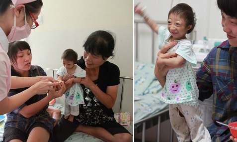 Dan dengan segala kondisi yang dialami putrinya, sang ibu tetap dengan bangga memberikan kasih sayangnya dan menyaksikan anaknya bermain di Children's Hospital di Provinsi Hunan, Changsha, China.