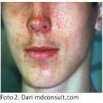 Pasien dengan tumor di kulit wajah (Foto 2 - disebut dengan facial angiofibroma) menunjukkan tanda-tanda seperti jerawat yang parah.