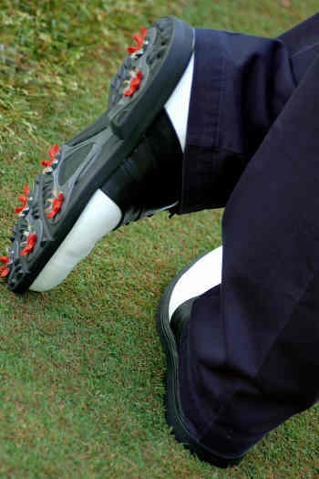 "Golf itu sepatunya biasanya dari kulit dan pakunya beda dari sepatu bola karena pakunya itu agak melebar seperti bentuk bunga. Selain agar sepatu bisa memegang dengan baik, juga sebagai suspensi sehingga tidak terlalu lelah berdiri terus jalan lagi karena dia tidak seperti sepak bola yang butuh sprint," jelas dr Michael.