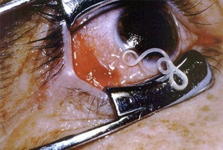 Cacing ini akan muncul di permukaan bawah bola mata. Kebanyakan cacing ini dapat ditemui di daerah Afrika dan India. Gejalanya sendiri dapat berupa gatal-gatal, nyeri sendi, bahkan kematian.